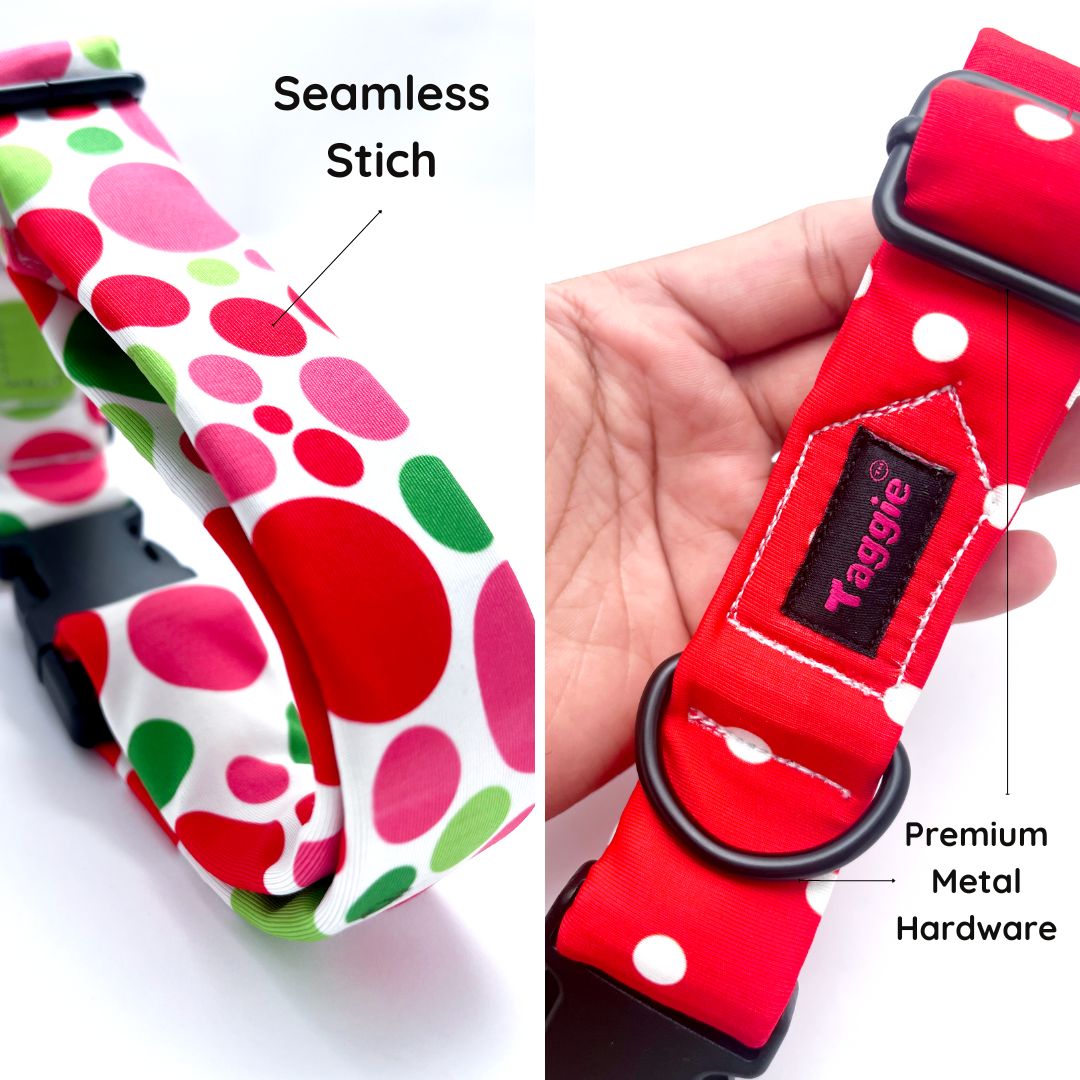 Crafted with durability and comfort in mind, our collar boasts a secure fit and vibrant holiday patterns. The tag, customizable with your pet's details, complements the ensemble with a touch of individuality.